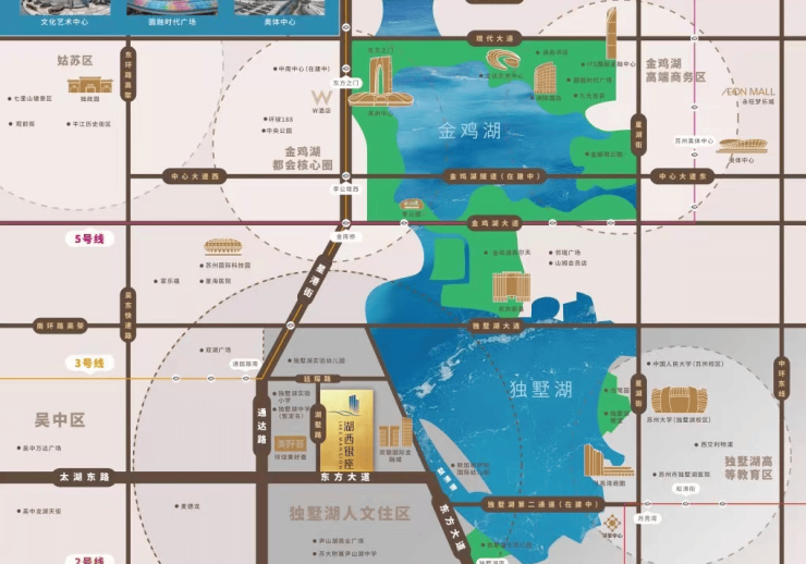 路网:东方大道、通达路、独墅湖隧道群畅达全城,自驾出行高效。