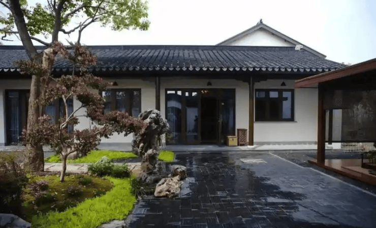 装修交付:毛坯交付,外墙为水性大理石漆,门窗为仿木纹铝合金,院落配中式木门与真草坪