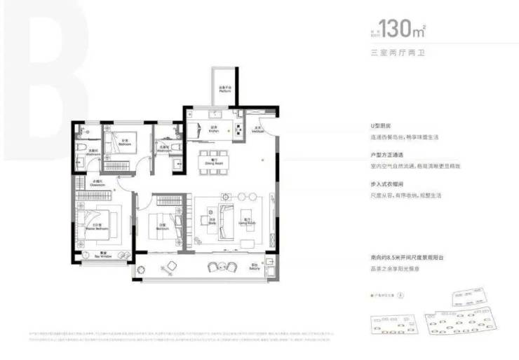 面积:约110㎡、130㎡、143㎡三大主力户型