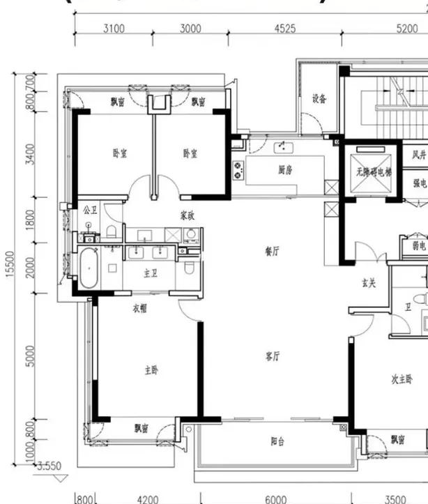 夹城里飘窗洞口净高1800,下方飘窗台做了300的翻边,导致样板房观感较差。