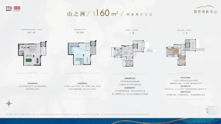118–160㎡叠墅私享梯户+星空露台+5.4米层高地下室,下叠带50㎡庭院,上叠享70㎡露台,实际使用面积超200㎡