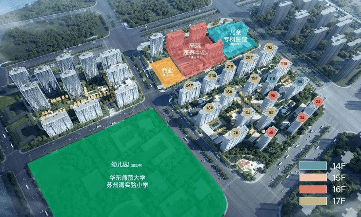教育优势:与华东师范大学苏州湾实验小学一路之隔,华中师范大学附属中学直线距离500米,形成从启蒙到高中的全龄教育矩阵