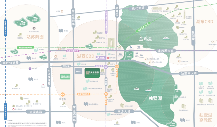 商业:临近苏州中心、双湖广场,规划通园路站高密度商业综合体