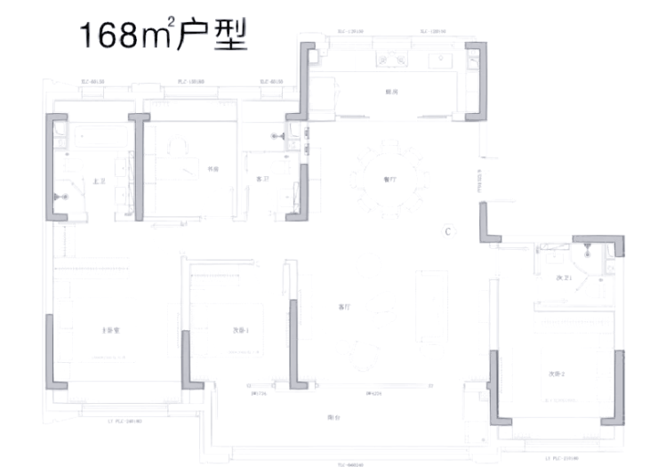 主力户型:建面123㎡(三房)、147-168㎡(四房)、216㎡(四房),设计方正,部分户型含双阳台及270°观景视野