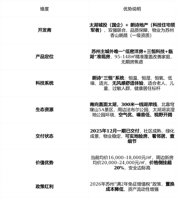 ✅ 核心结论:太湖畔稀缺“科技+低密+湖景”准现房,苏州改善家庭的静奢之选