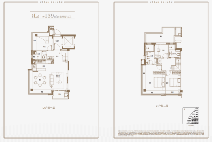 139–143㎡叠墅:四房两厅两卫,独立庭院+星空露台,一层一户,私密性极强,媲美别墅体验;