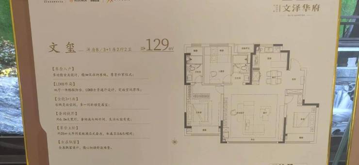 建面约129㎡三房+1多功能房(可改四居),总价230万-260万元