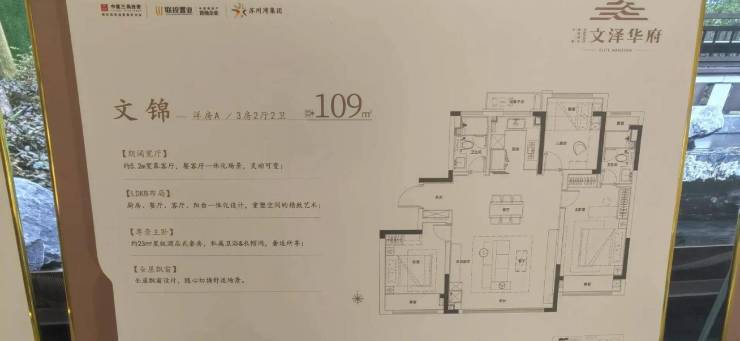 建面约109㎡三房两厅两卫,总价180万-200万元,均价约1.85万元/㎡