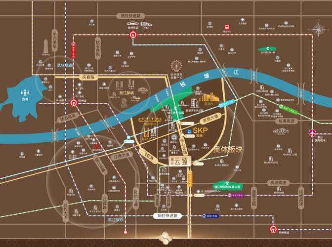 位于杭州奥体板块,与钱江新城合称“杭州CBD双核”,集合板块内优质配套资源,繁华触手可及。