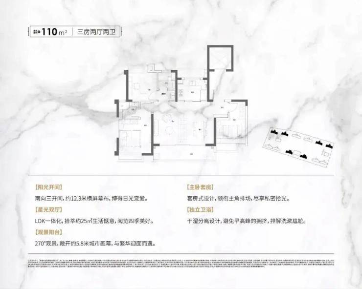 主力户型:建面约110㎡(三房)、120㎡(三房)、138㎡(四房)