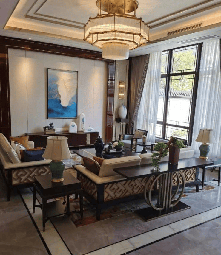稀缺产品属性:容积率仅0.6的纯中式别墅群,344户中仅78套独栋产品,采用苏州园林式"宅院合一"设计,385-600㎡户型均带私家庭院