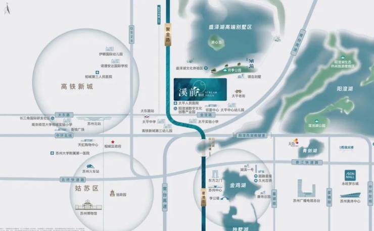 盛泽湖商业规划也正式出台,它以园区金鸡湖李公堤为范本,打造苏州北部环湖新商圈——沈公堤,涵盖了商业、学校、运动、医疗等: