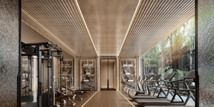 近2200㎡地下会所,全景健身房、全景恒温泳池、静谧观景瑜伽房、私宴厅、休闲会客吧、茶室六大主题空间