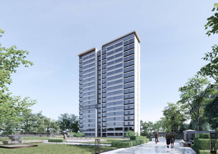 项目总占地约3.27万平方米,总建筑面积约9.93万平方米,容积率2.0,绿化率35%,规划8栋14-18层小高层住宅,共528户。车位配比1:1.3,采用全人车分流设计,地下设双层车库。建筑外立面采用浅灰色金属板材与大面积双层中空玻璃组合,呈现现代简约的"高级灰"美学,既符合当下审美,又经得起时间考验。