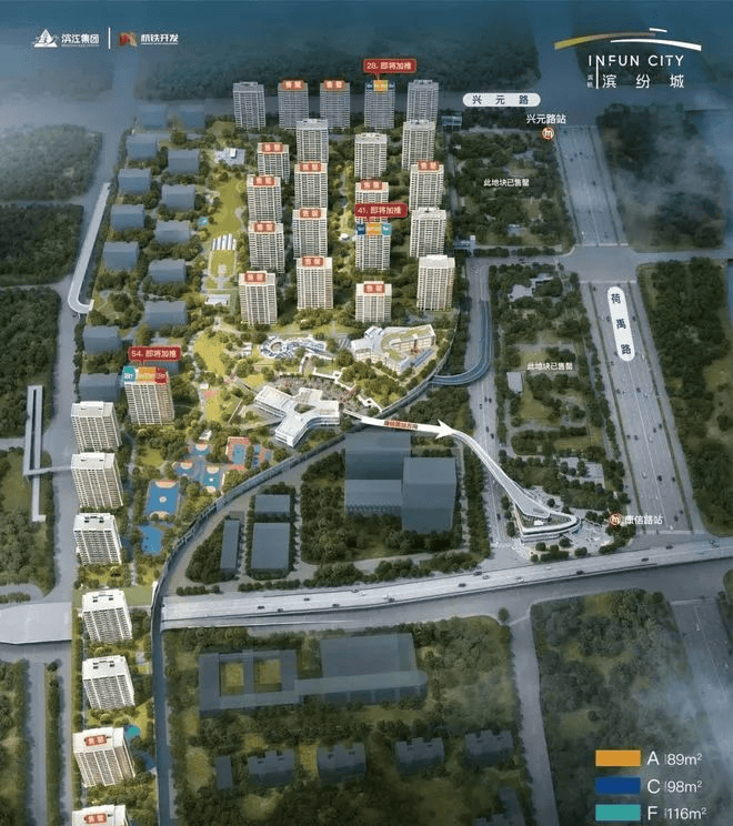 总建面约63万㎡,横跨地铁9号线兴元路站(在建)和康信路站(在建)两大地铁站,是杭州迄今为止,少数在自家小区里拥有两座地铁站的小区。