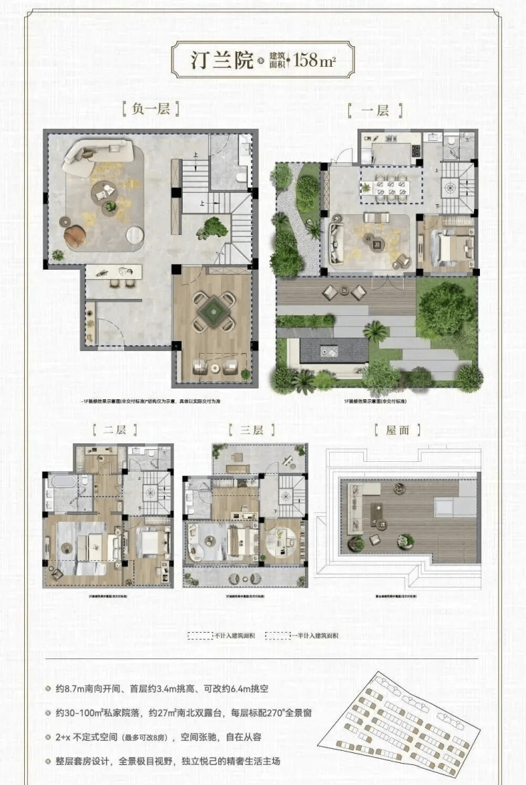 产品力:联排别墅得房率超245%,部分户型通过挑空设计实现高赠送率