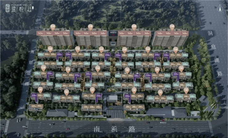 产品类型:115席联排别墅(建面约200-233㎡)及4栋11层洋房(建面约143㎡)。