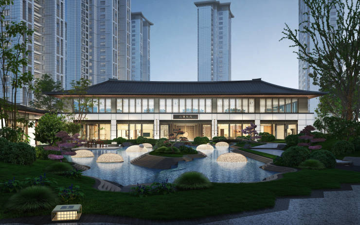 园林设计:4万方新中式园林,洛社唯一带会所楼盘