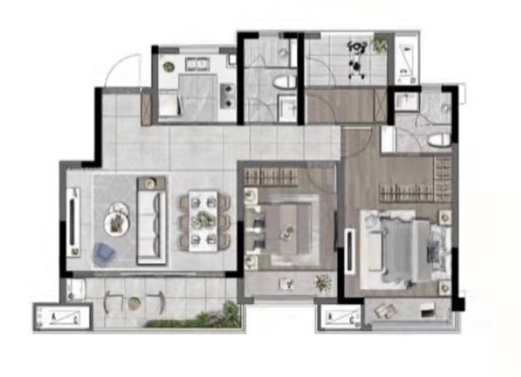 金地湖城风华(吴江汾湖)户型亮点解析:建面 81-97㎡3 居,1 梯 2 户低密设计,层高 2.95 米,近城司路口公交与苏州南站