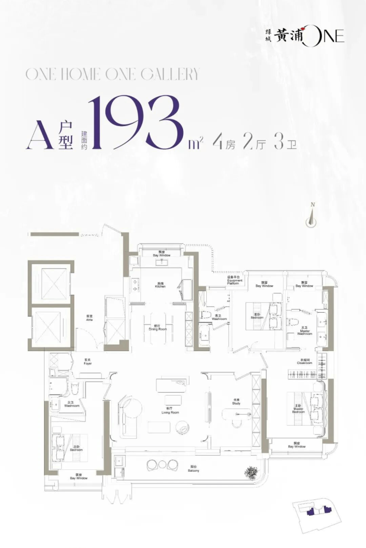 ·建面约193m²户型,主力总价3400万左右
