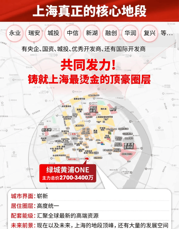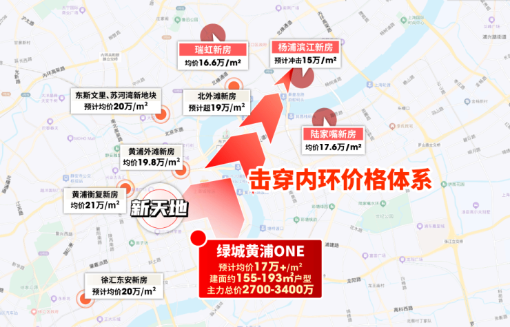而绿城黄浦ONE处在新天地旁,价格却更为划算,对下游板块形成了“一网打尽” 的态势