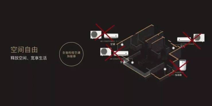 八大自由主张:温度/湿度/新风/声光/智控/预约/用能/空间自由,提升居住舒适度。
