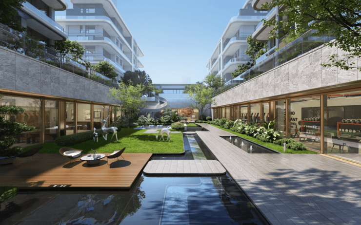 项目创新采用“空中庭院+垂直绿化+共享空间”三位一体设计理念,实现“户户有露台,家家有庭院”的森林氧吧生活愿景得房率最高达91%,外立面采用180°-360°环幕式露台设计