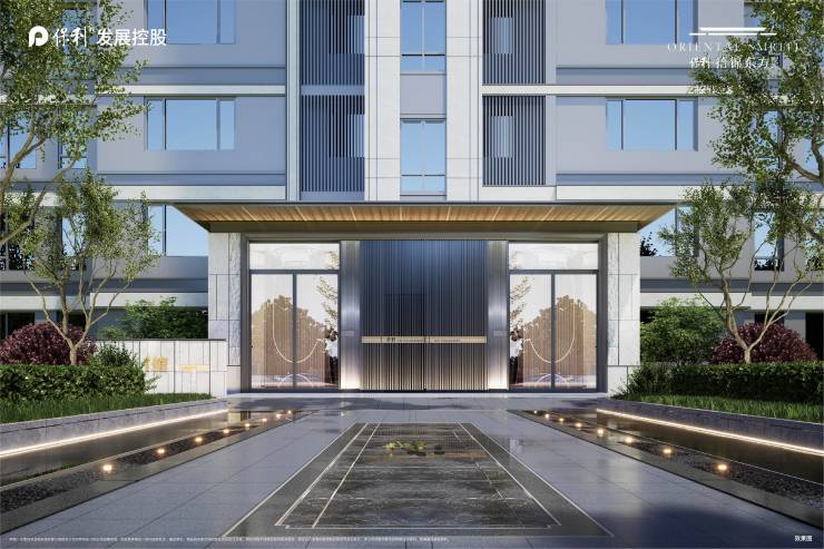 项目采用东方美学与现代建筑融合的设计理念,外立面采用昆石同色石材搭配现代铝材和高透玻璃,呈现极简东方的大美意象。社区内部以"两轴、三带、六进"空间格局打造宋代美学园林,营造四季可游的东方雅致生活场景