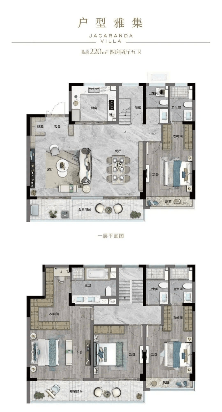 户型面积:约160㎡、约180㎡、约220㎡三个户型。