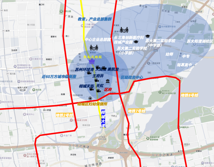 城市规划:项目所在板块被纳入相城"一核双轴"发展规划,未来将重点发展数字经济、文化创意等产业,已吸引京东智谷、紫光云引擎等企业入驻。