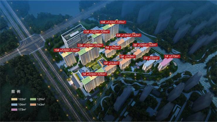 面积:122㎡三房两厅两卫、129㎡四房两厅两卫、134㎡四房两厅两卫、143㎡四室两厅两卫