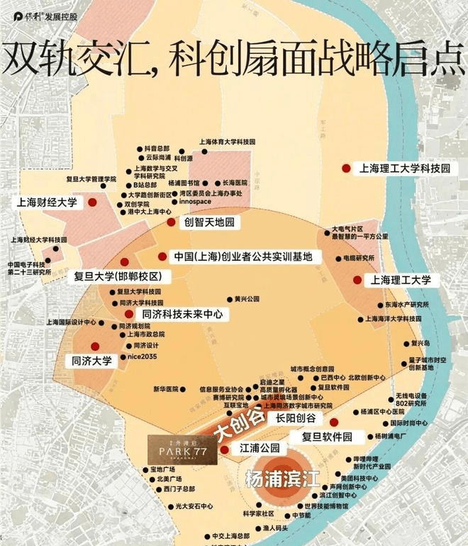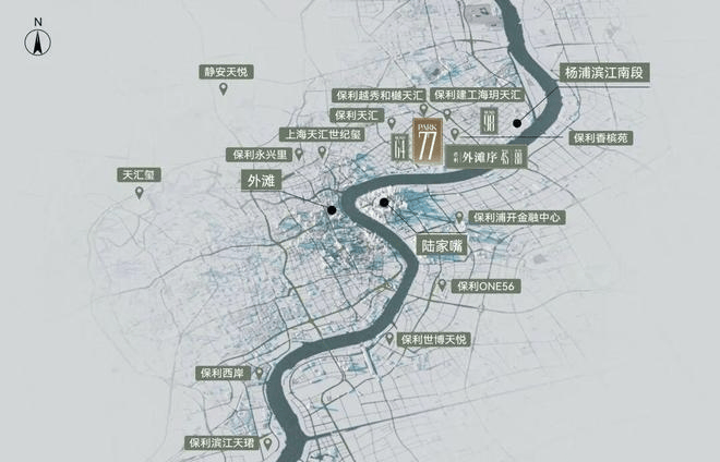 保利外滩启PARK77择址于上海一脉外滩黄金双S湾之一的杨浦滨江板块,该区域于2025年正式划入上海CAZ(中央活动区)规划,成为上海黄金CAZ之一