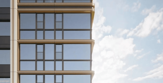 大面积铝板与玻璃幕墙的精密拼接、米白色铝板勾勒出的几何线条,以及金色、米白色铝板为材质搭建的穹顶,在阳光下折射出温润光泽,实现历史文脉与现代美学的完美对话。