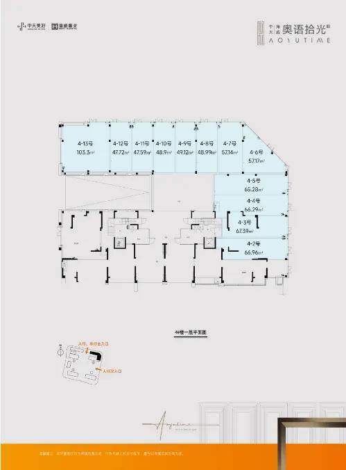 位处奥语拾光车行、人行主入口两侧,对望“德信观奥宸府”主入口,掌潮两大社区的核心流量