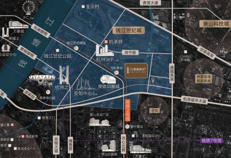 【中天海威·奥语拾光】位于钱江世纪城,未来总部基地启动区。未来将与奥体印象城、SKP、潮启世纪中心(约150米地标综合体)形成商业聚合效应,成为三公里内社区消费配套之一,集餐饮,休闲,娱乐为一体,形成强大的核心消费圈。