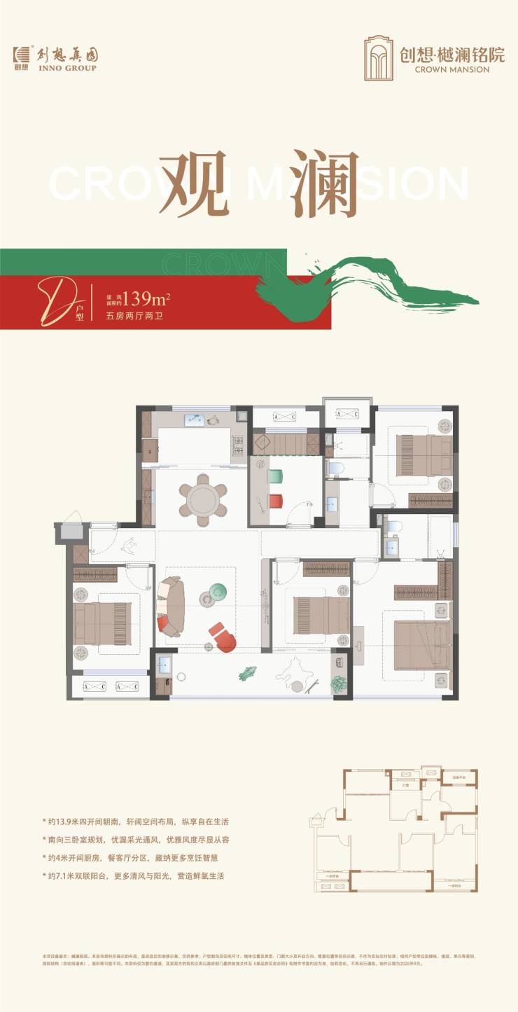 136㎡户型南向面宽达13.9米,适合三代同堂