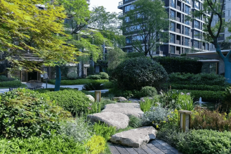 社区内设雾森系统+下沉庭院,实现“下楼即公园”