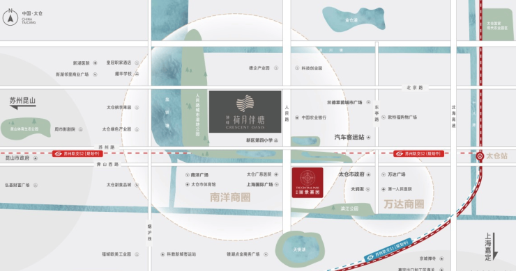 自驾 :紧邻人民北路、北京西路主干道,15min直达太仓万达商圈,接驳沈海高速(G15),30min至上海嘉定、昆山花桥。