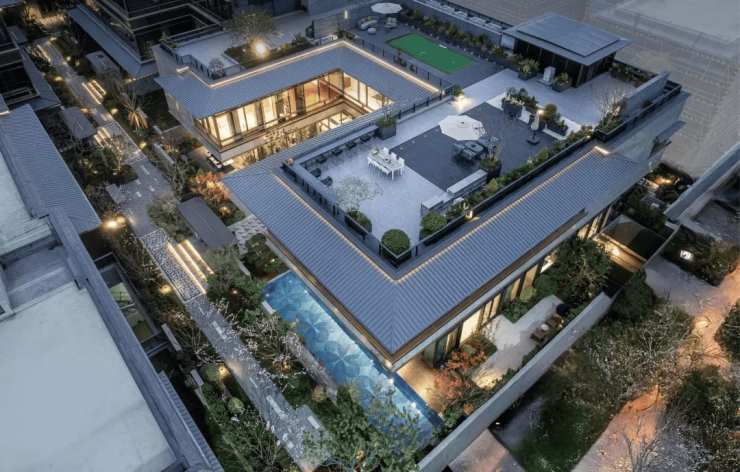 项目采用建发标志性的新中式建筑风格,溯源宋代美学,通过现代材料与工艺实现古典美学的现代表达。建筑为低密布局,容积率低,确保每栋建筑拥有充分的采光、通风与景观视野。设计上注重庭院空间营造,每栋独栋均规划有前庭后院,并设有大面积露台,将自然引入办公环境。