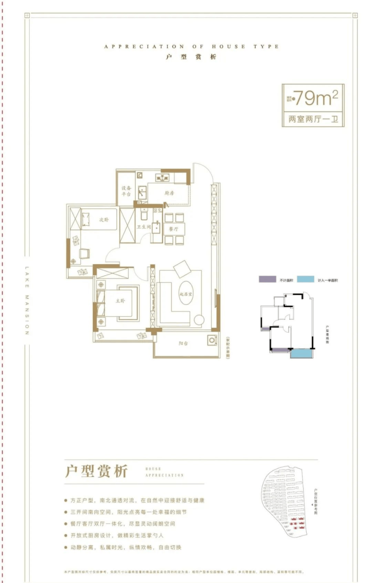 79平米,5层,电梯洋房,得房率82%;洋房户型图。