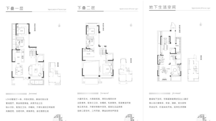 下叠:280平(含地下室约110平,赠送南北花园约70平)