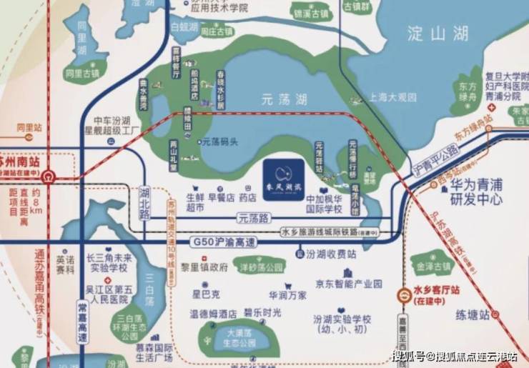 文旅配套:地处江南腹心,周边不仅有周庄、黎里、西塘、同里、朱家角等10余个古镇,还有元荡湖生态公园、元荡驿站、鼋荡小馆、曲水善湾、上海大观园等休闲生活配套。