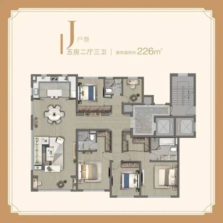 建面约203㎡四房两厅(大平层设计,主卧套房+独立衣帽间)