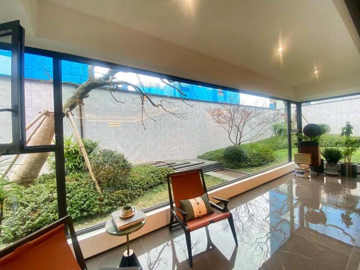 建筑风格采用现代东方风格外立面,搭配江南园林景观示范区,整体得房率77-80%,部分户型带横厅设计