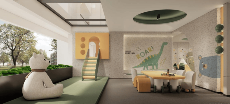 新社交场景——3#楼做首层架空,规划亲子互动、会客社交两大主题泛会所;