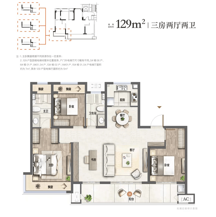 建面约129㎡ 三房两厅两卫
