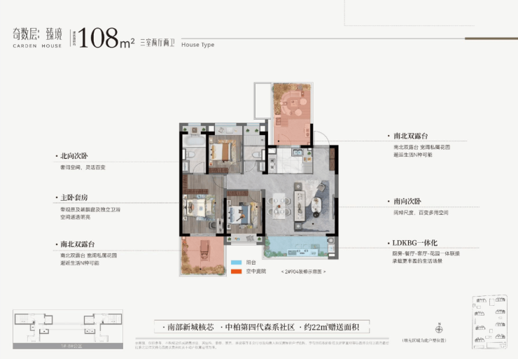 偶数层:南北双庭院,北院收纳杂物,南院观景休闲