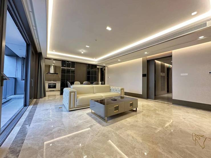 精装大平层,面积段约230-380㎡,层高3.15-3.3米,LDK一体化横厅面宽超10米,270°环幕江景视野
