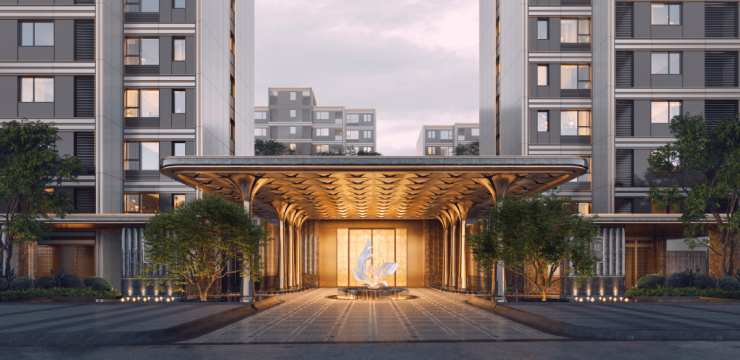 景观体系:以“百合雅韵”为主题,打造中央水院、下沉庭院及度假泳池,架空层牺牲3000万货值打造双主题社交空间。