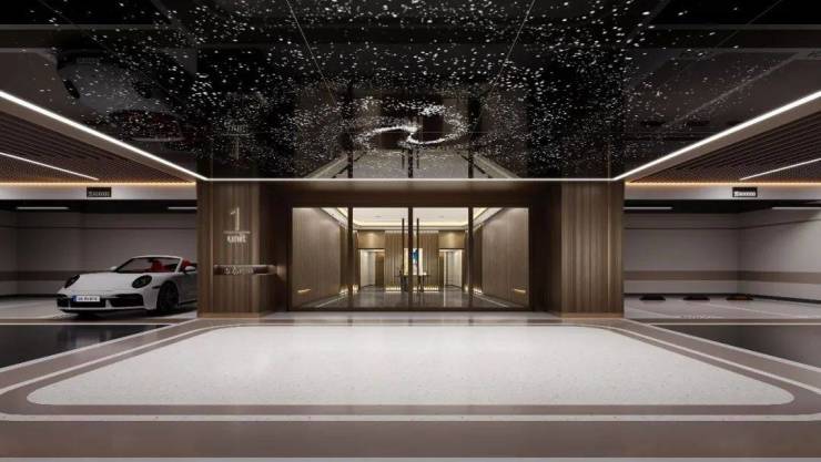 驾驶爱车归来,步入地下车库星空穹顶,下车便能感受到极致的归属感。温暖的灯光、专属私密入户空间,第一时间将身心放松下来,从工作切换到生活,沉浸在美好场景之中。此外,每户门口均设有金属壁灯、不锈钢标识牌,也将专属的体面感妥贴呈现。